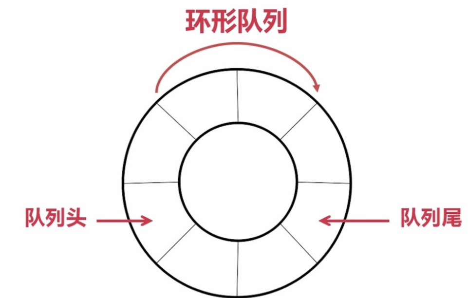 实际中我们有时还会使⽤⼀种队列叫循环队列。如操作系统课程讲解⽣产者消费者模型时可以就会使⽤循环队列。环形队列通常使⽤数组实现这个我们就使用数组表达,有一个head和tail(头和尾),每次加入元素或者出队列。就可以加加减减,然后创建一个size表示元素个数,如果size==0,那就空了。具体看看代码: