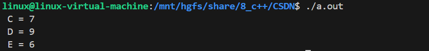 {Complex A(2.0);Complex B(4.0);Complex C = A + 5;Complex D = 5 + B;Complex E = A + B;std::cout << " C = " << C.real << std::endl;std::cout << " D = " << D.real << std::endl;std::cout << " E = " << E.real << std::endl;return 0;