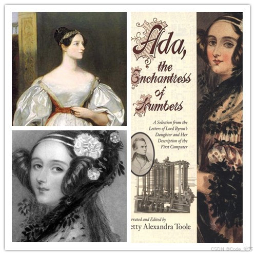 奥古斯塔·阿达·拜伦是她的原名,因为嫁给威廉·金后晋封为洛芙莱斯伯爵,而后改的名字。她不仅是数学家(被誉为数字女王)、翻译家(正是翻译才结识到巴贝奇)还是英国大诗人乔治·戈登·拜伦的女儿,更是世界上公认的第一个程序员。