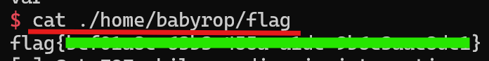 我们利用的是 "/bin/sh"命令 ,仅让我们获取了控制权,所以我们需要搭配 ls(显示子目录)和 cat(读取)命令获取flag: