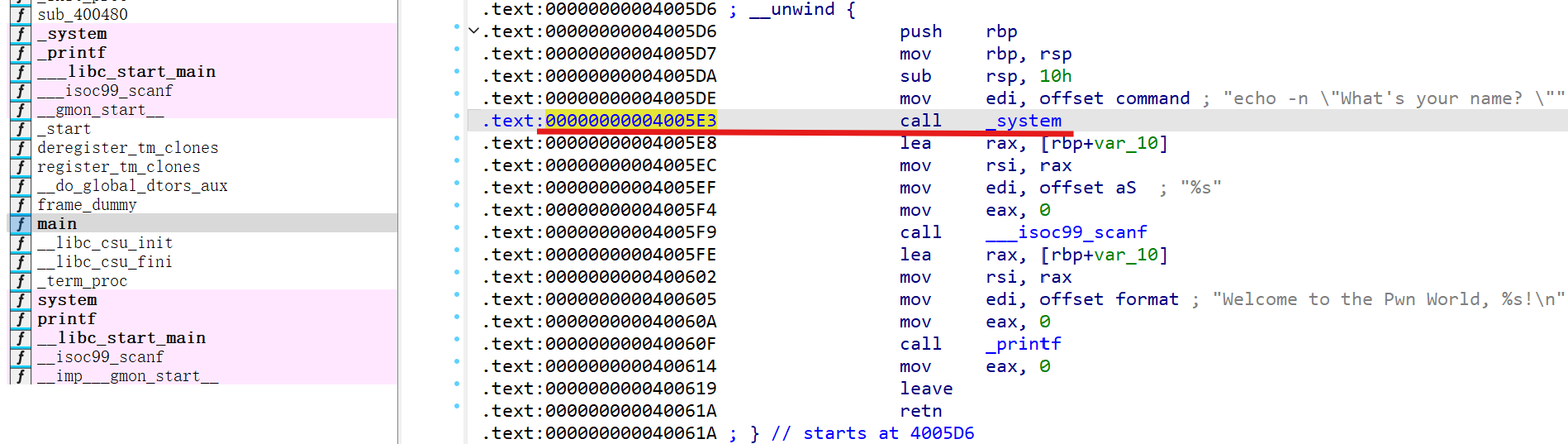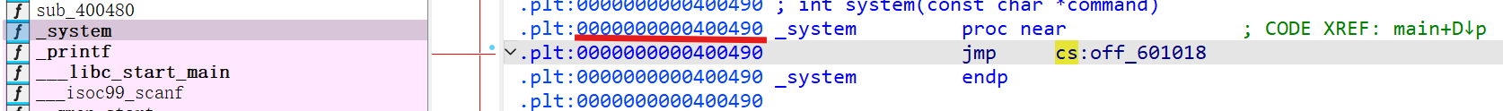 我们可以使用main函数中call _system的调用地址,也可以直接使用system函数本身的地址: