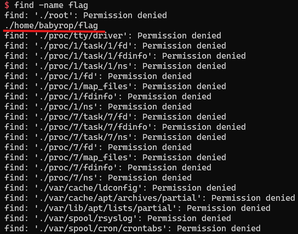 但使用 ls 命令后发现,此题的flag并不直接位于bin目录下,那么便需要查找其路径: