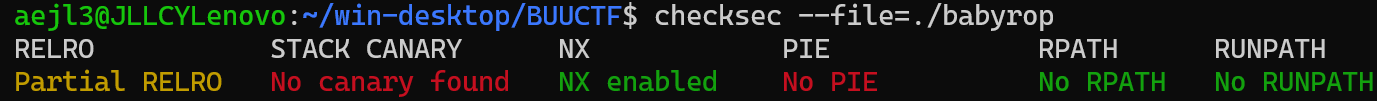 显示除了NX保护均未开启或完全启用 ,而NX开启说明数据区域(如栈、堆)不可执行,是防止将 shellcode 写入数据区后跳转执行,所以可优先考虑不利用shellcode注入且简单直接的方式寻找漏洞。