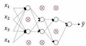 以某层含 4 个神经元的神经网络为例,来说明 dropout,如下图所示