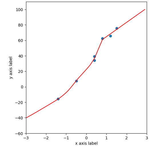 points = np.array([[-0.5, 7.7], [1.2, 65.8], [0.4, 39.2], [-1.4, -15.7],[1.5, 75.6], [0.4, 34.0], [0.8, 62.3]])
