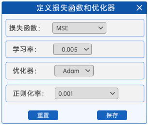 由于是拟合线问题,所以本实验选择的是MSE(均方误差损失函数)。