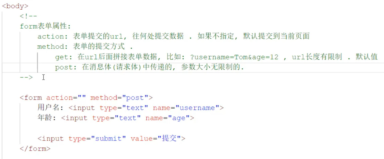 - method:规定用于发送表单数据的方式(GET、POST),其中GET是默认方式