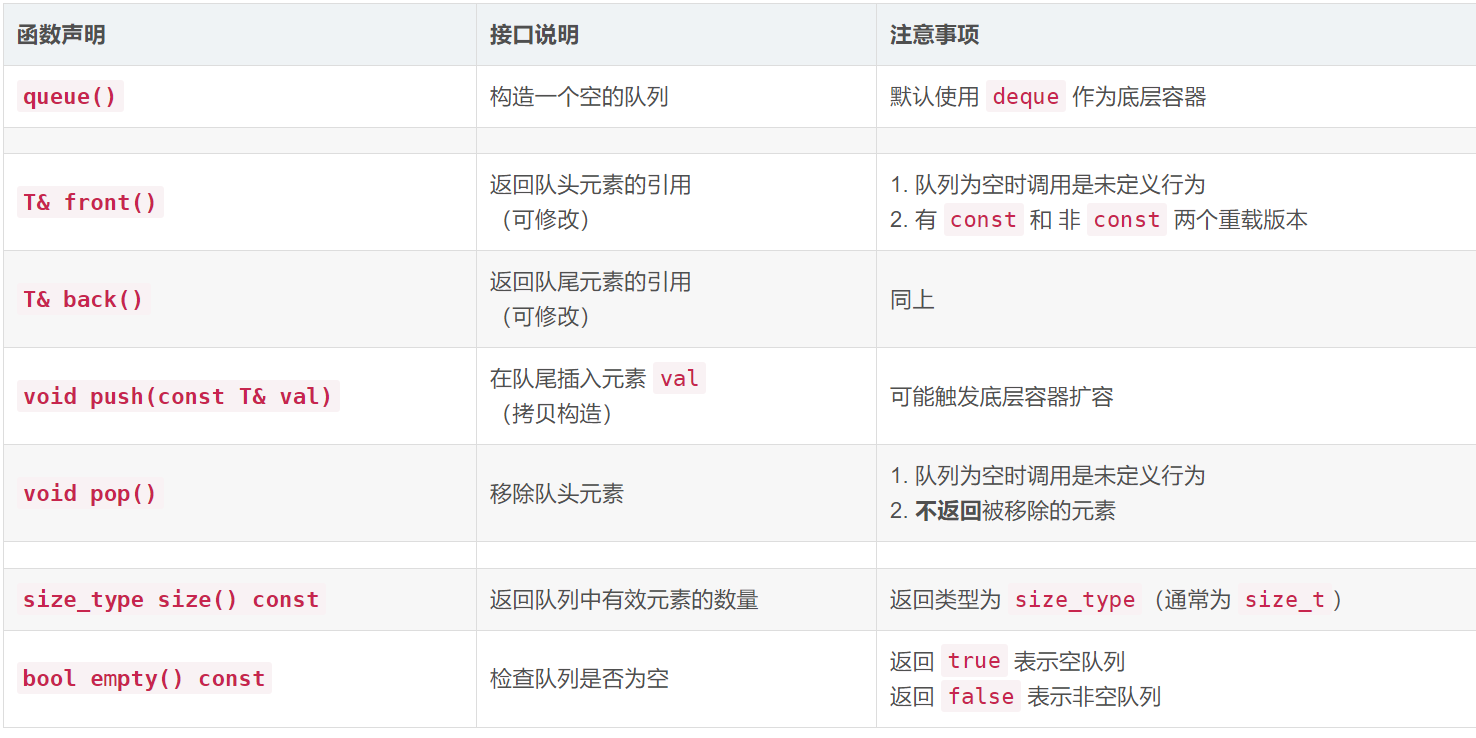 成员函数:queue自身定义的操作接口。