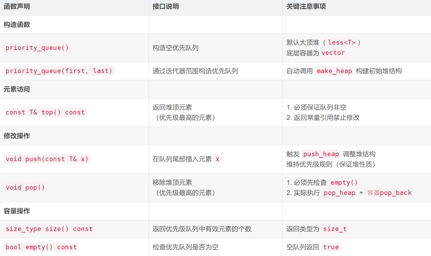 C++ 标准模板库中关于 priority_queue容器适配器相关知识,主要可以分为以下三个部分: