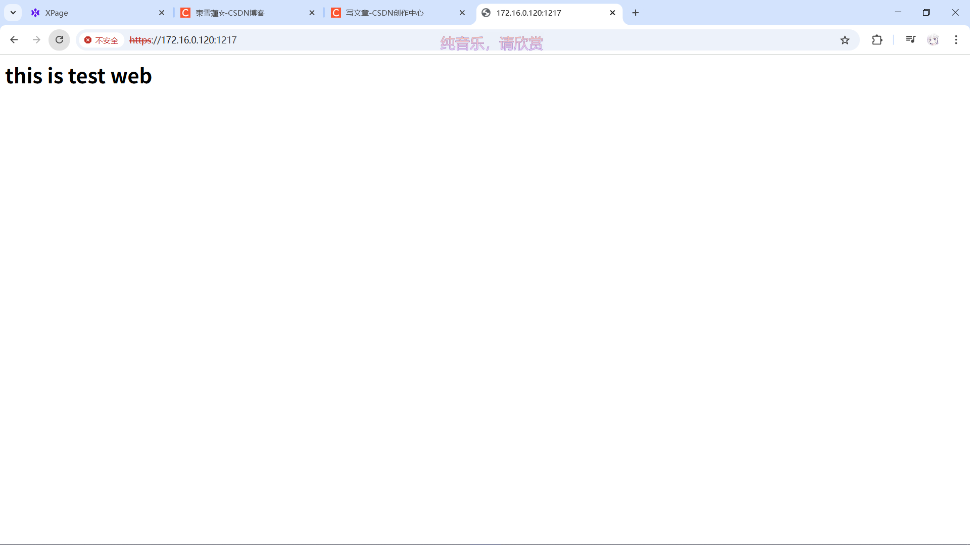 cd /opt/compose_nginx vim docker-compose.yml version: '3' services:nginx:container_name: web1hostname: nginxbuild:context: ./nginxdockerfile: Dockerfileports:- 1216:80- 1217:443networks:lnmp:ipv4_address: 172.18.0.10volumes:- ./wwwroot:/usr/local/nginx/html- ./nginx.conf:/usr/local/nginx/conf/nginx.conf- ./ssl/private:/usr/local/nginx/ssl/private- ./ssl/certs:/usr/local/nginx/ssl/certs networks:lnmp:driver: bridgeipam:config:- subnet: 172.18.0.0/24 -------------------------------------------------------------------------------- #这里写点东西以防启动报错,后面会改 vim nginx.conf #user nobody; worker_processes 1; #error_log logs/error.log; #error_log logs/error.log notice; #error_log logs/error.log info; #pid logs/nginx.pid; events {worker_connections 1024; } http {include mime.types;default_type application/octet-stream; #log_format main '$remote_addr - $remote_user [$time_local] "$request" '# '$status $body_bytes_sent "$http_referer" '# '"$http_user_agent" "$http_x_forwarded_for"'; #access_log logs/access.log main; sendfile on;#tcp_nopush on; #keepalive_timeout 0;keepalive_timeout 65; #gzip on; server {listen 80;server_name localhost; #charset koi8-r; #access_log logs/host.access.log main; location / {root html;index index.html index.htm;} #error_page 404 /404.html; # redirect server error pages to the static page /50x.html#error_page 500 502 503 504 /50x.html;location = /50x.html {root html;} # proxy the PHP scripts to Apache listening on 127.0.0.1:80##location ~ \.php$ {# proxy_pass http://127.0.0.1;#} # pass the PHP scripts to FastCGI server listening on 127.0.0.1:9000##location ~ \.php$ {# root html;# fastcgi_pass 127.0.0.1:9000;# fastcgi_index index.php;# fastcgi_param SCRIPT_FILENAME /scripts$fastcgi_script_name;# include fastcgi_params;#} # deny access to .htaccess files, if Apache's document root# concurs with nginx's one##location ~ /\.ht {# deny all;#}} # another virtual host using mix of IP-, name-, and port-based configuration##server {# listen 8000;# listen somename:8080;# server_name somename alias another.alias; # location / {# root html;# index index.html index.htm;# }#} # HTTPS server##server {# listen 443 ssl;# server_name localhost; # ssl_certificate cert.pem;# ssl_certificate_key cert.key; # ssl_session_cache shared:SSL:1m;# ssl_session_timeout 5m; # ssl_ciphers HIGH:!aNULL:!MD5;# ssl_prefer_server_ciphers on; # location / {# root html;# index index.html index.htm;# }#} } daemon off; -------------------------------------------------------------------- #执行命令,生成容器,注意先用docker pull centos:7,不然Dockerfile会报错 docker-compose -f docker-compose.yml up -d