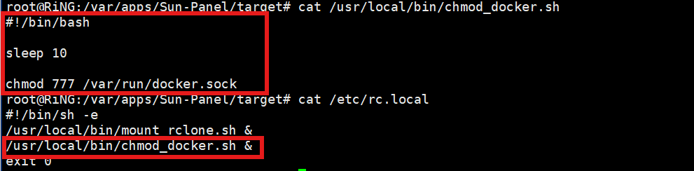 chmod +x /usr/local/bin/chmod_docker.sh#编辑开机启动脚本rc.localvim /etc/rc.local#在最后一行exit 0的上面添加一行/usr/local/bin/chmod_docker.sh &#Esc :wq 回车保存并退出