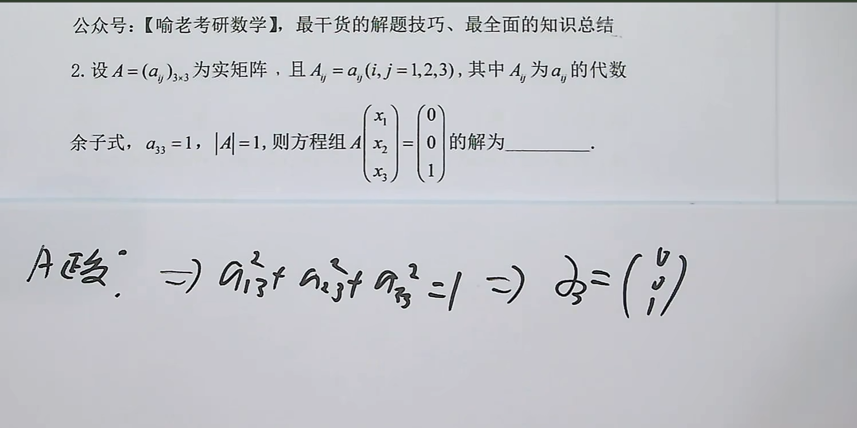 遇到这种不好计算的题目就直接求行列式计算