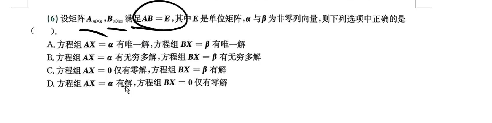 线性方程组中行满秩和列满秩和方程组的对应关系