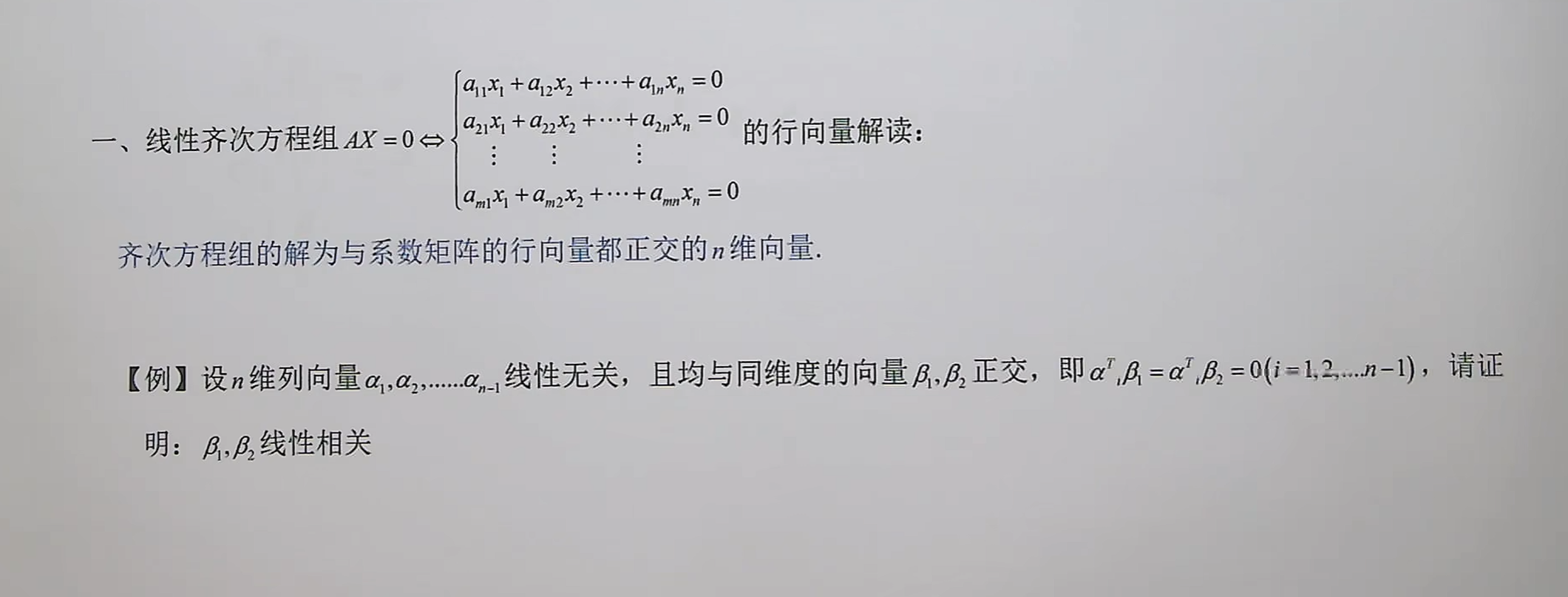 方程组的行向量意义解读