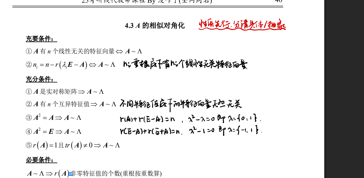 相似对角化的必要条件