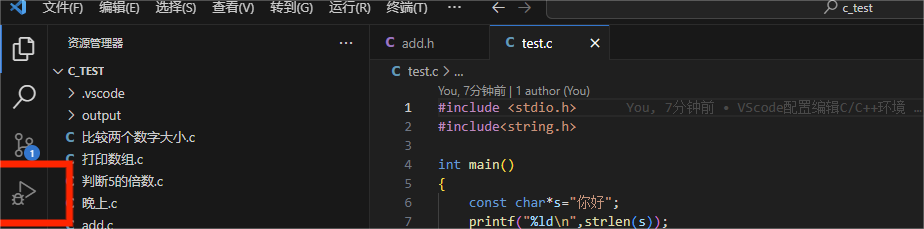 接下来举例说明,如下代码在改进后的配置文件tasks.json后,运行生成文件,然后像Linux系统那样运行。