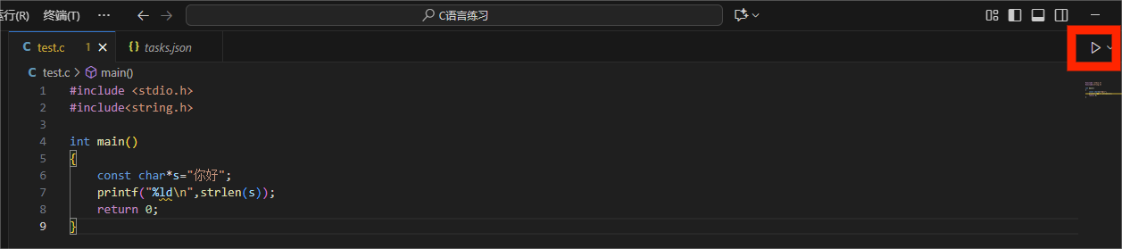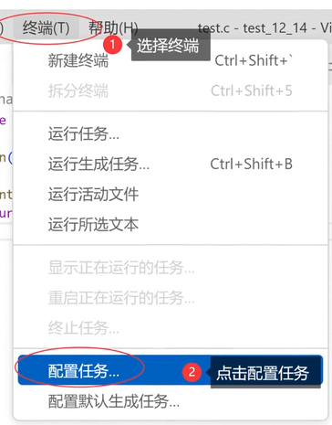 也可以点击对应的.c文件,然后点击【终端】->【运行生成任务】