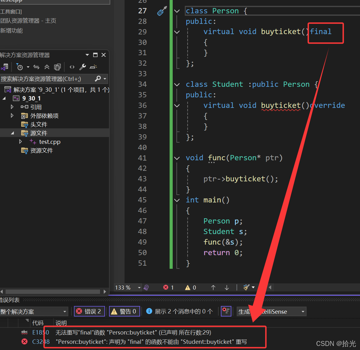 如果我们不想让 派生类重写这个虚函数,那么可以用final去修饰。
