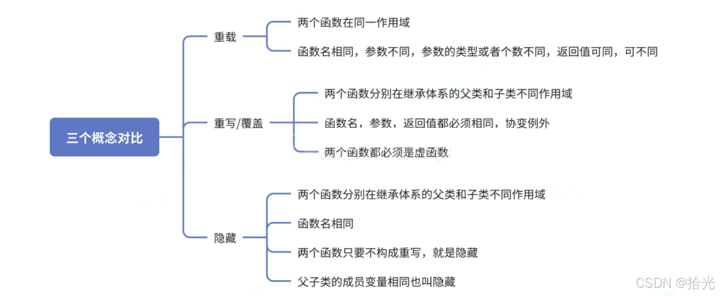 重写是实现多态的关键。它的定义是:在派生类中提供一个与基类中某个虚函数具有完全相同函数名、参数列表、返回值类型的函数。