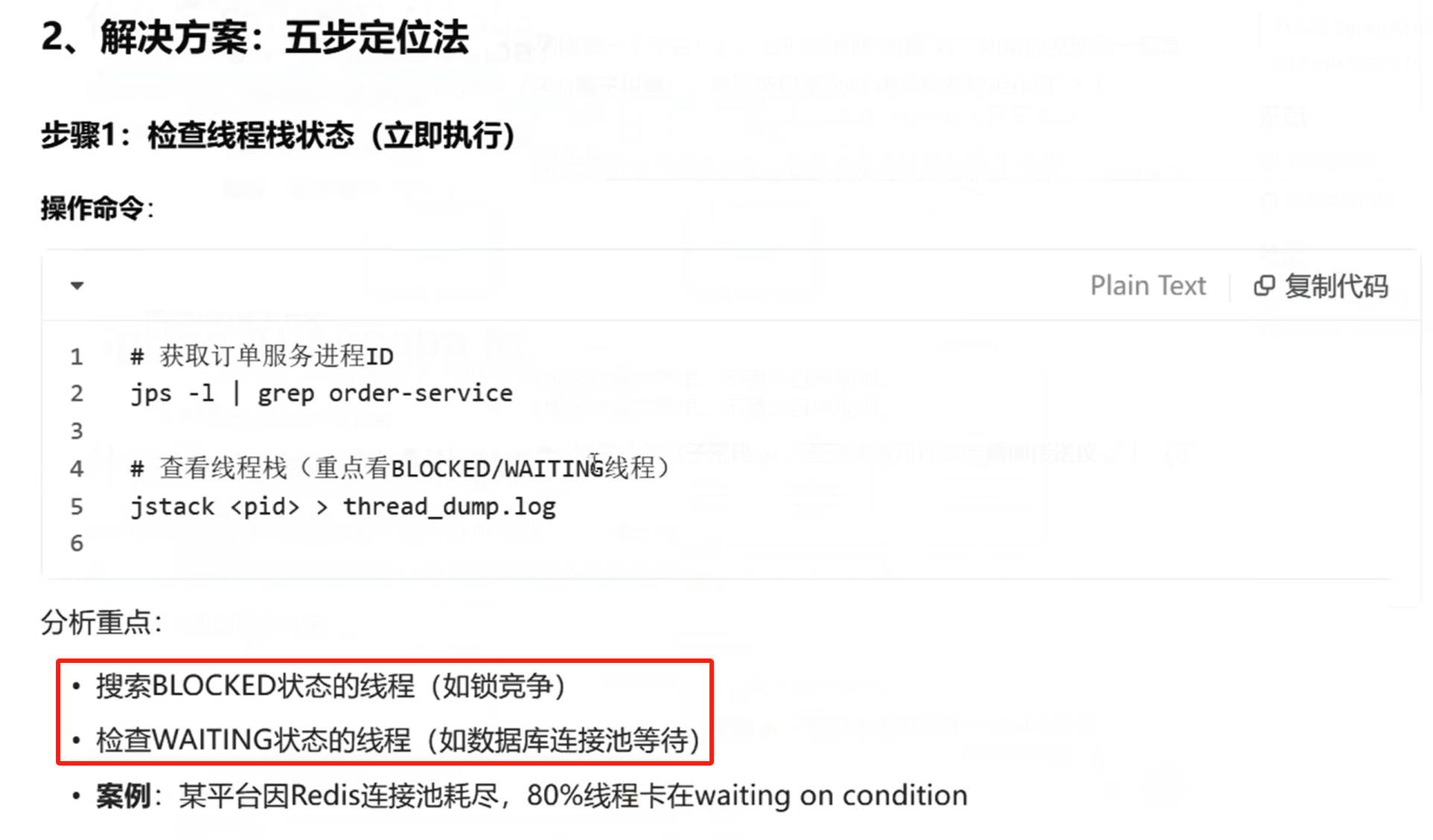 cpu、内存没问题(都没超过70%),就可以确定是网络IO问题(数据库、RPC、三方调用-接口超时);然后看ELK日志&撸代码,就可以精准定位