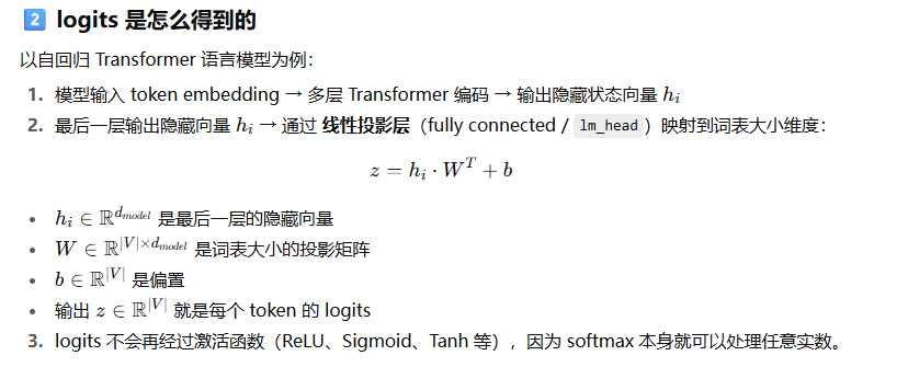 在大语言模型里,logits 是每个 token 的“相对偏好分数”,可以是正数、负数或零