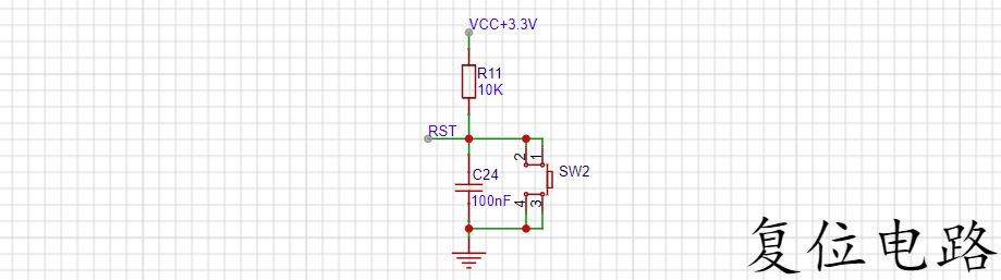 按键按下时,RST直接接地,完成复位。