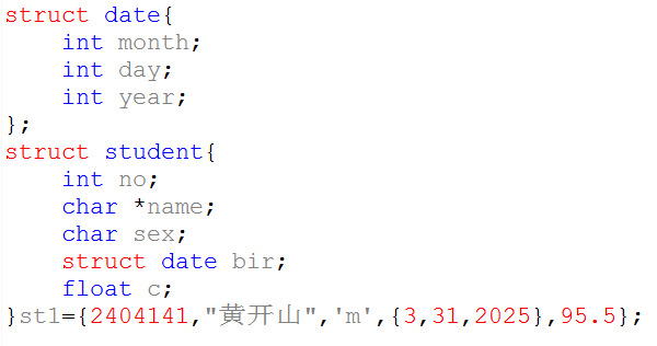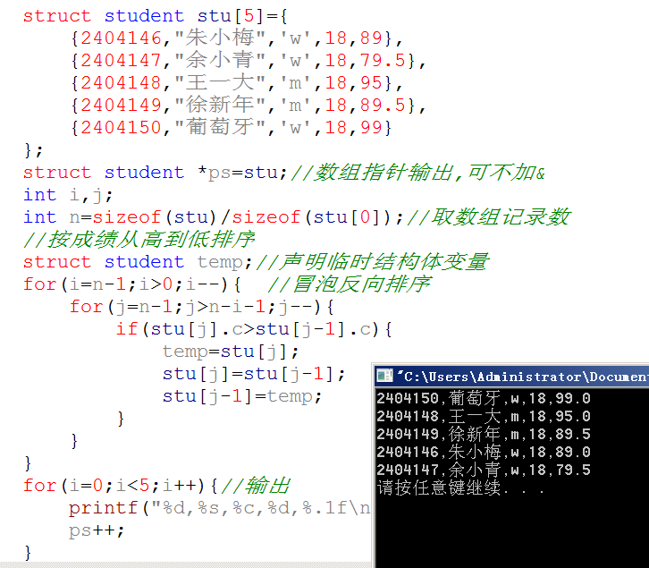可以看出结构体把不同类型的数据,定义在一起,体现了对数据管理的灵活性。