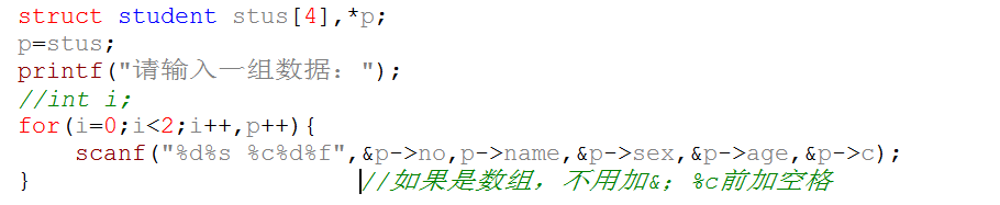 结构体指针的使用:&p->no等同于&(p->no),->优先级高,意思是指针p指向成员no的地址。
