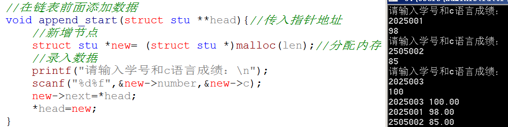 增加了一个头节点head,只有指针没有数据,内存空间还是在的,输出了乱七八糟。这样似乎浪费了一个空间,把它利用起来,也就是头节点也记录数据。