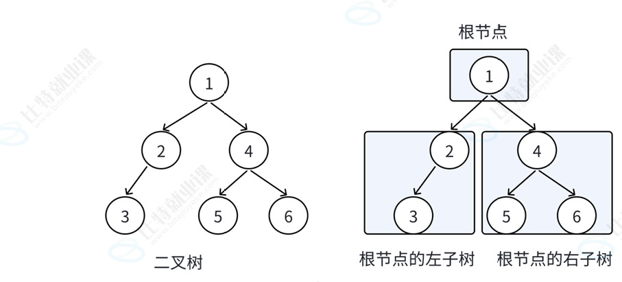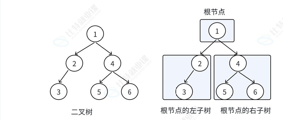 或者由一个根节点加上两棵分别称为左子树和右子树的二叉树组成