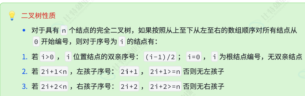 因为堆的性质可以利用等比数列来求,我们可以发现当根的序号为i时,两个子节点的序号分别为2i+1和2i+2,反过来也可也利用子节点的序号来推导根的序号