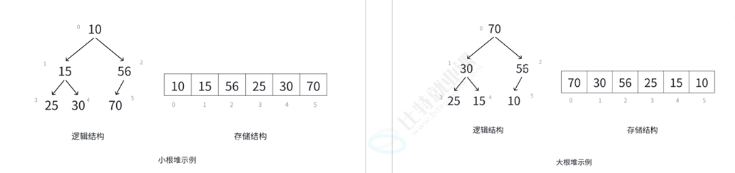可以看出,堆一定是个完全二叉树。大堆可以看作从大到小排,但如果以每一层的从左到右看不一定都从大到小,只是在竖直方向上保持,即父亲节点的值一定大于儿子节点的值,但儿子节点之间的值不一定从左到右,从大到小排序。小堆即相反。