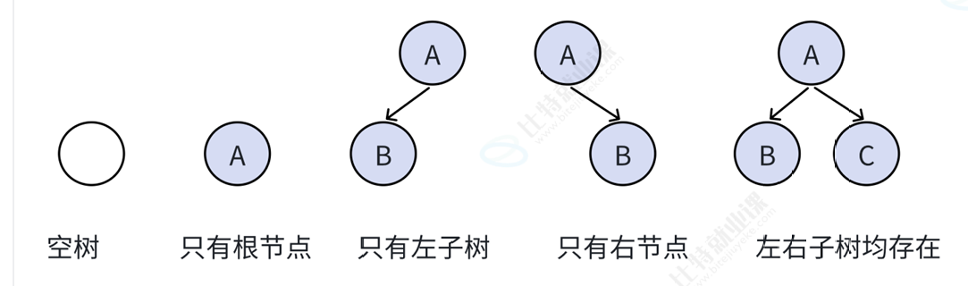 注意:对于任意的⼆叉树都是由以下⼏种情况复合而成