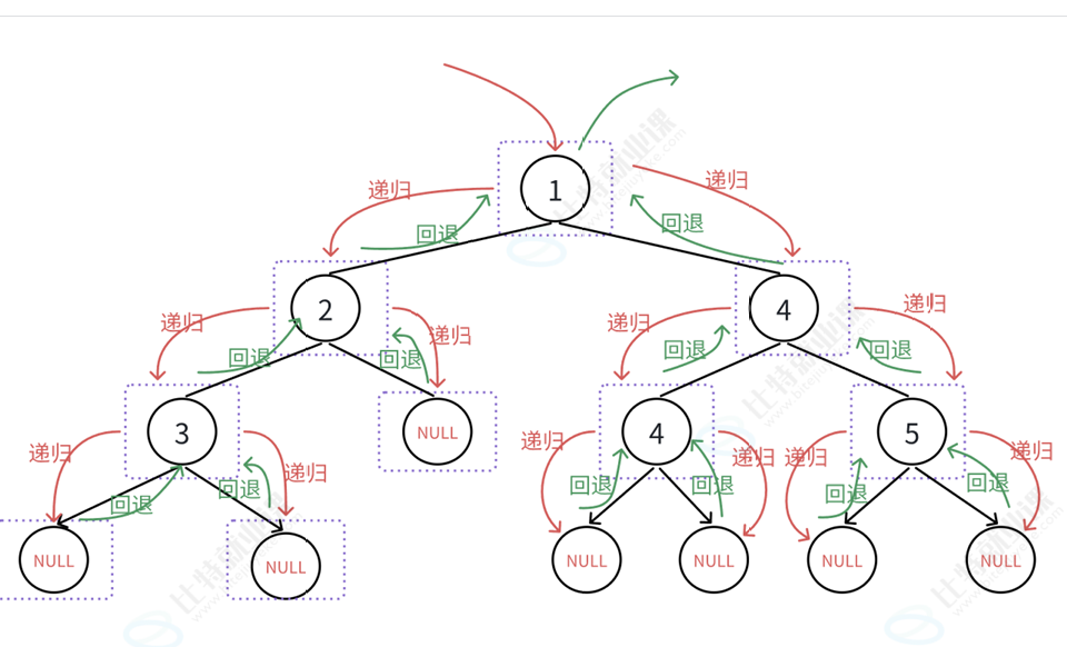 按照规则,⼆叉树的遍历有:前序/中序/后序的递归结构遍历: