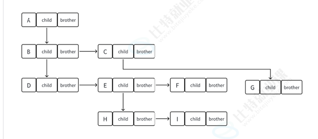 该表示法把右孩子改成了右兄弟,如B的右兄弟为C