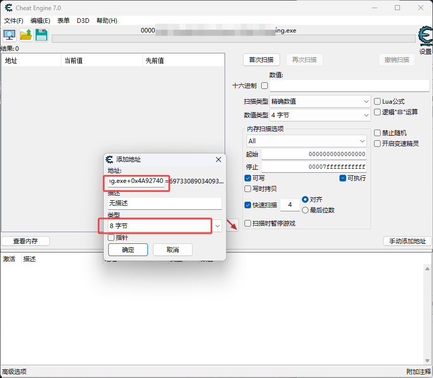 游戏exe的文件名+上一个内容中找到的FUObjectArray偏移,也就是0x4A92740,然后点击确定