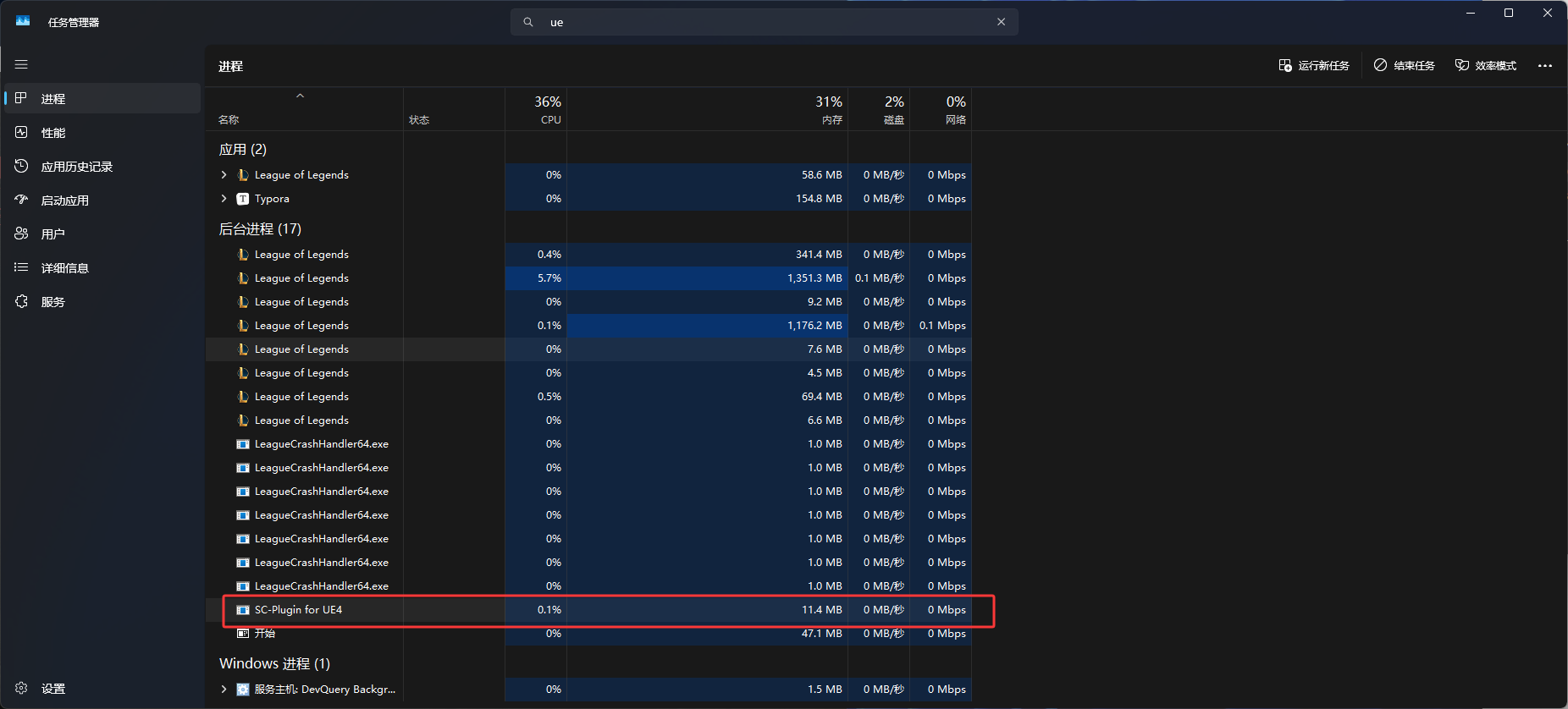 首先打开游戏,然后使用任务管理器把SC-Plugin for UE4进程关闭掉(如果关不掉说明检测没有处理,去看之前的内容进行处理)