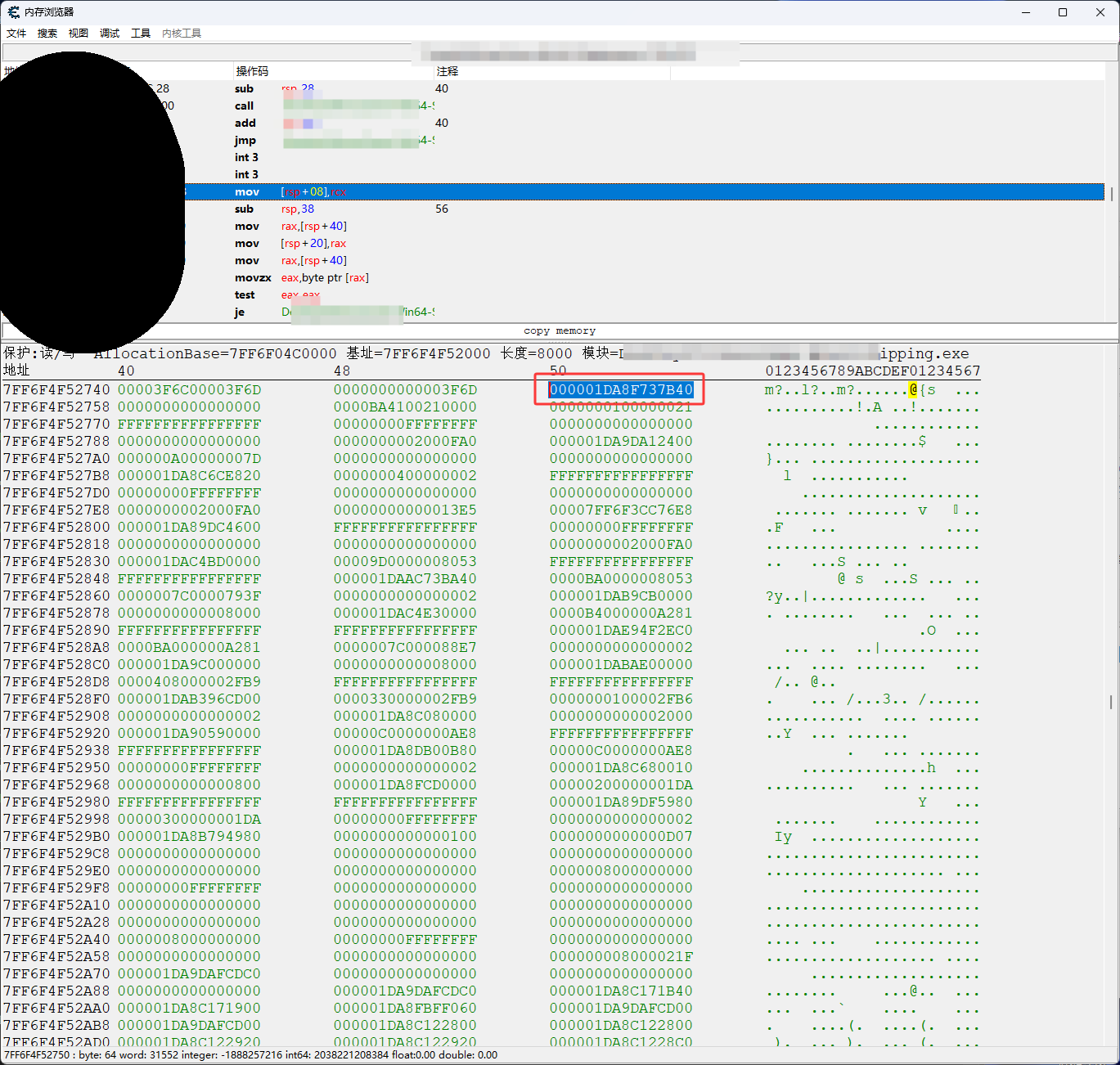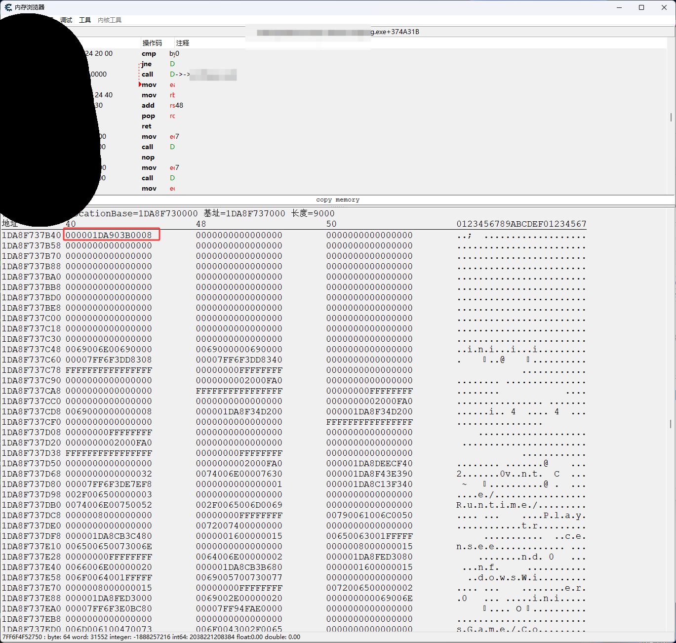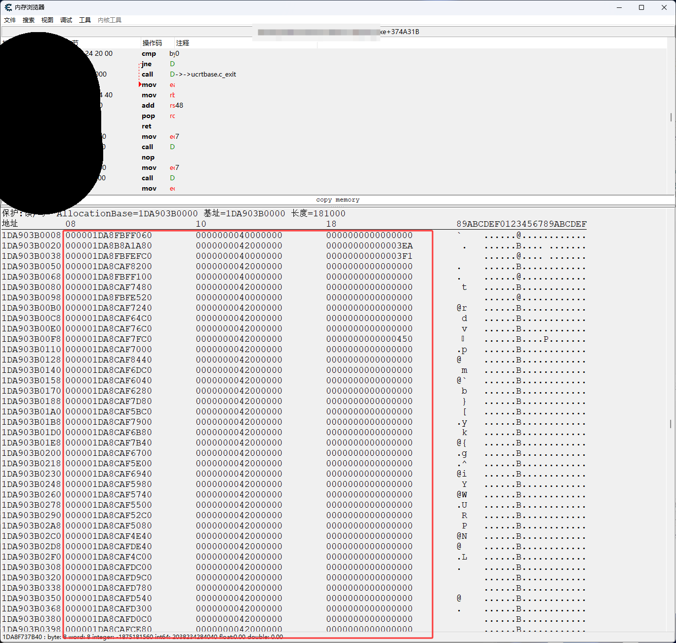 然后单击下图红框,然后再按空格键进入1DA903B0008内存地址
