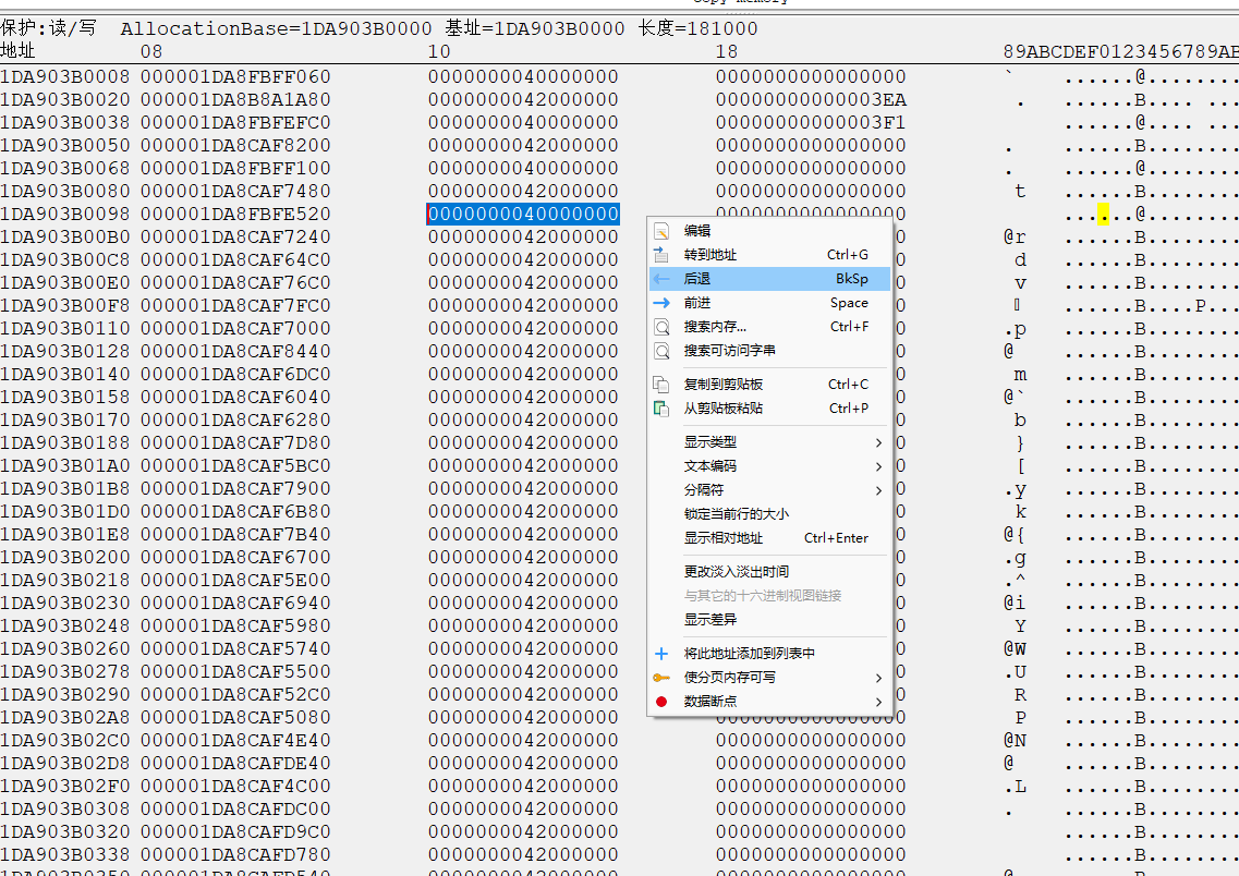 然后选择浏览相关内存区域