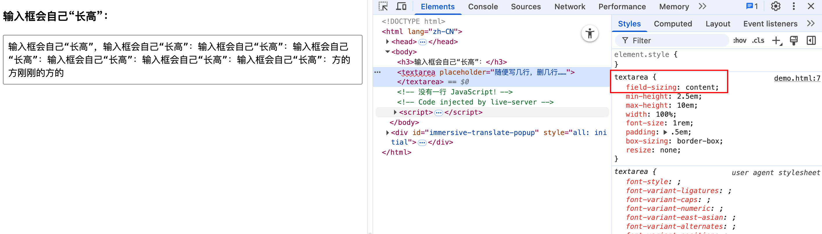 - textarea:行为等价于 height: max-content;但保留可换行逻辑;