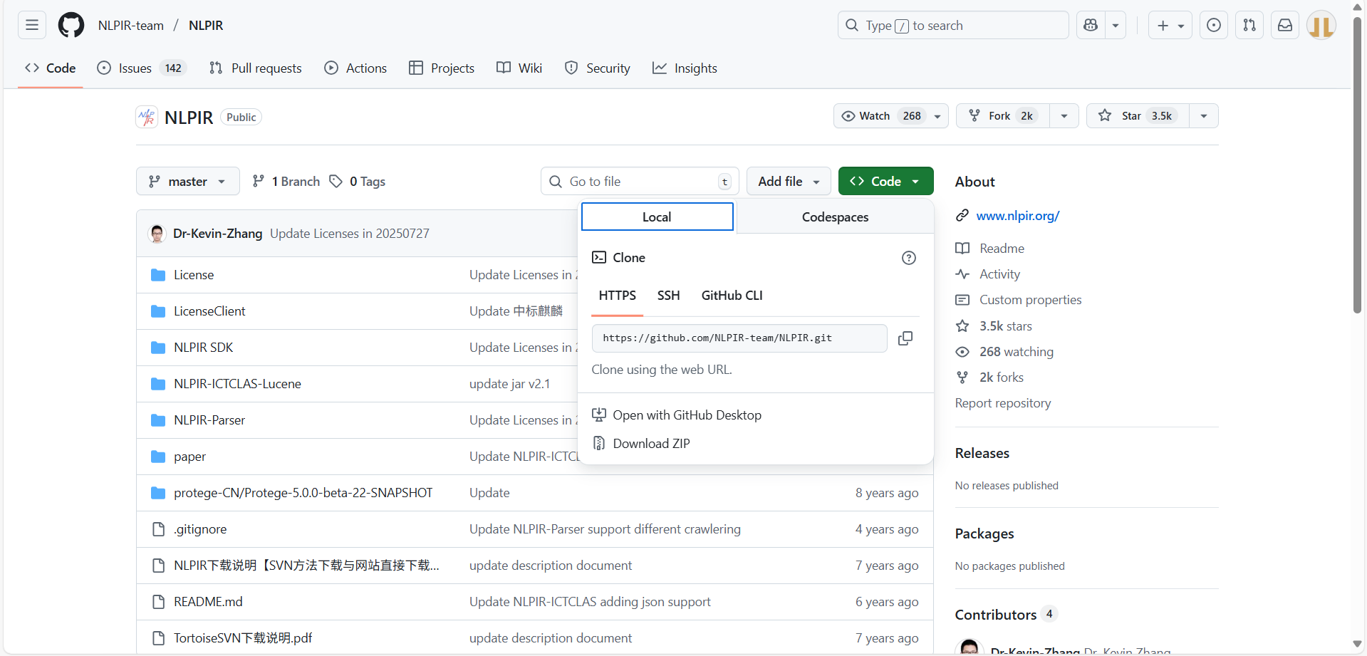 git clone https://github.com/NLPIR-team/NLPIR.git