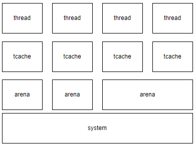 glibc中的malloc管理,为了减小多线程之间并发调用malloc时的同步,引入了arena和tcache。