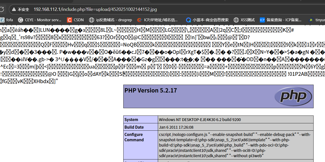 有些二次渲染会将原本的包含图片马进行损坏,这里可以通过使用010editor编辑一个二次渲染后图片马不会损坏的图片马,这里直接给出一个二次渲染后不会损坏的图片马点击这里,该图片马内容为,随后配合文件包含漏洞打组合拳即可。