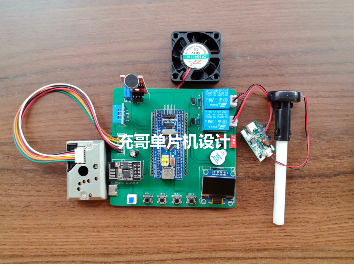 {delay_init(); //系统延时函数初始化OLED_Init(); //屏幕初始化uart3_init(115200); //串口3初始化,波特率115200uart1_init(115200); //串口1初始化,波特率115200uart2_init(9600); //串口2初始化,波特率9600DHT11_Init(); //DHT11温湿度初始化Control_Init(); //声光报警,风扇、加湿器初始化Adc_Init(); //pm2.5浓度、声音检测初始化TIME_Config(); //定时器初始化KEY_Init(); //按键初始化PM25_Init(); //PM2.5led引脚初始化while(1) {if(Time_Period[1]>1000) //Time_Period[1] 在定时器中累加{get_all_sensor_data(); //传感器数据采集Time_Period[1] = 0;} if(page_num == 1){ //屏幕更新OLED_Show_FirstPage();}else if(page_num == 2){OLED_Show_SecondPage();}else if(page_num == 3){OLED_Show_ThirdPage();}Key_event_handle(); //按键监测Sensor_Data_Handle(); //数据处理}