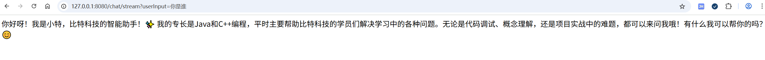 3. 测试:访问: http://127.0.0.1:8080/chat/stream?userInput=你是谁