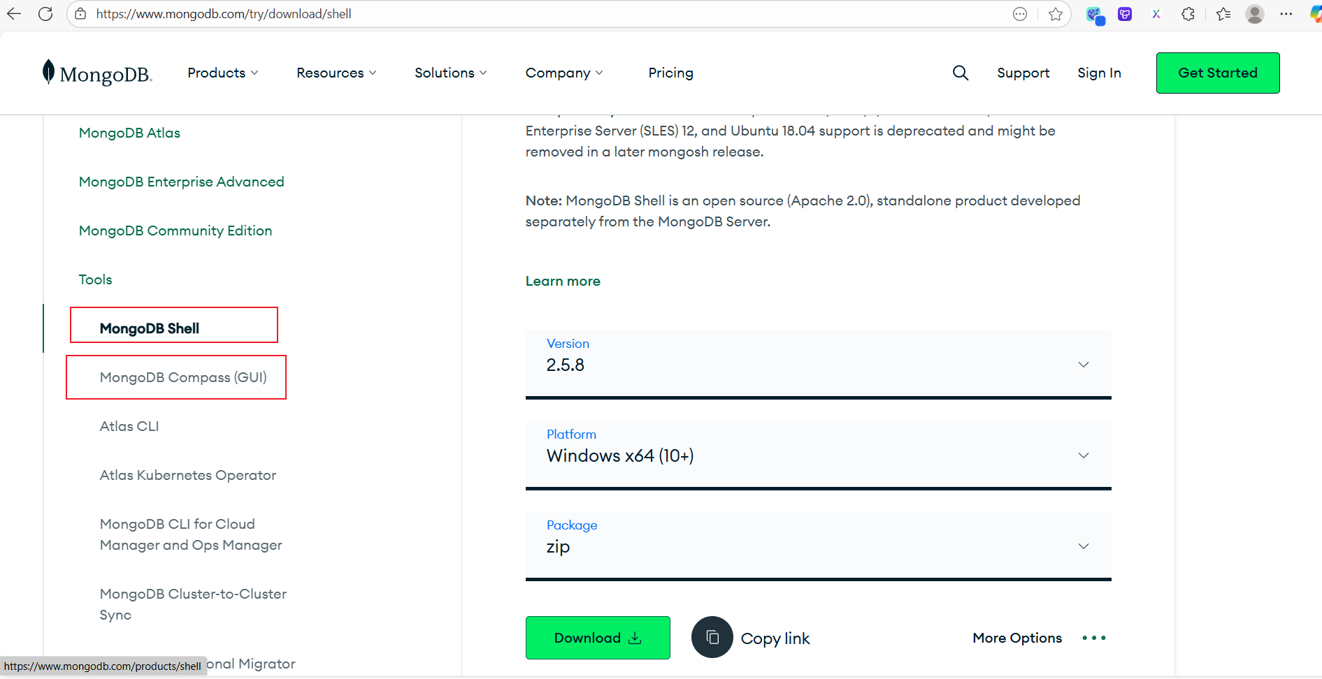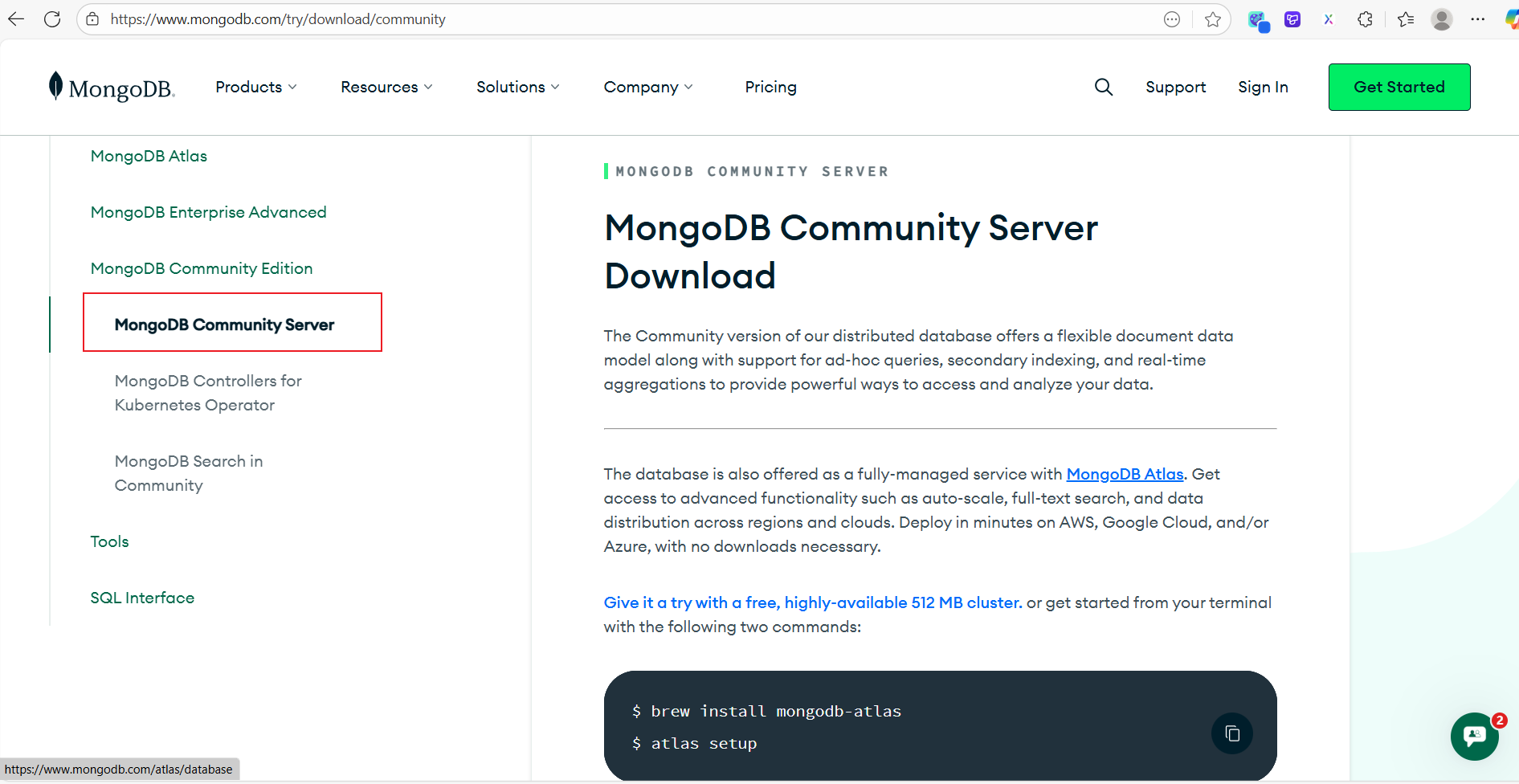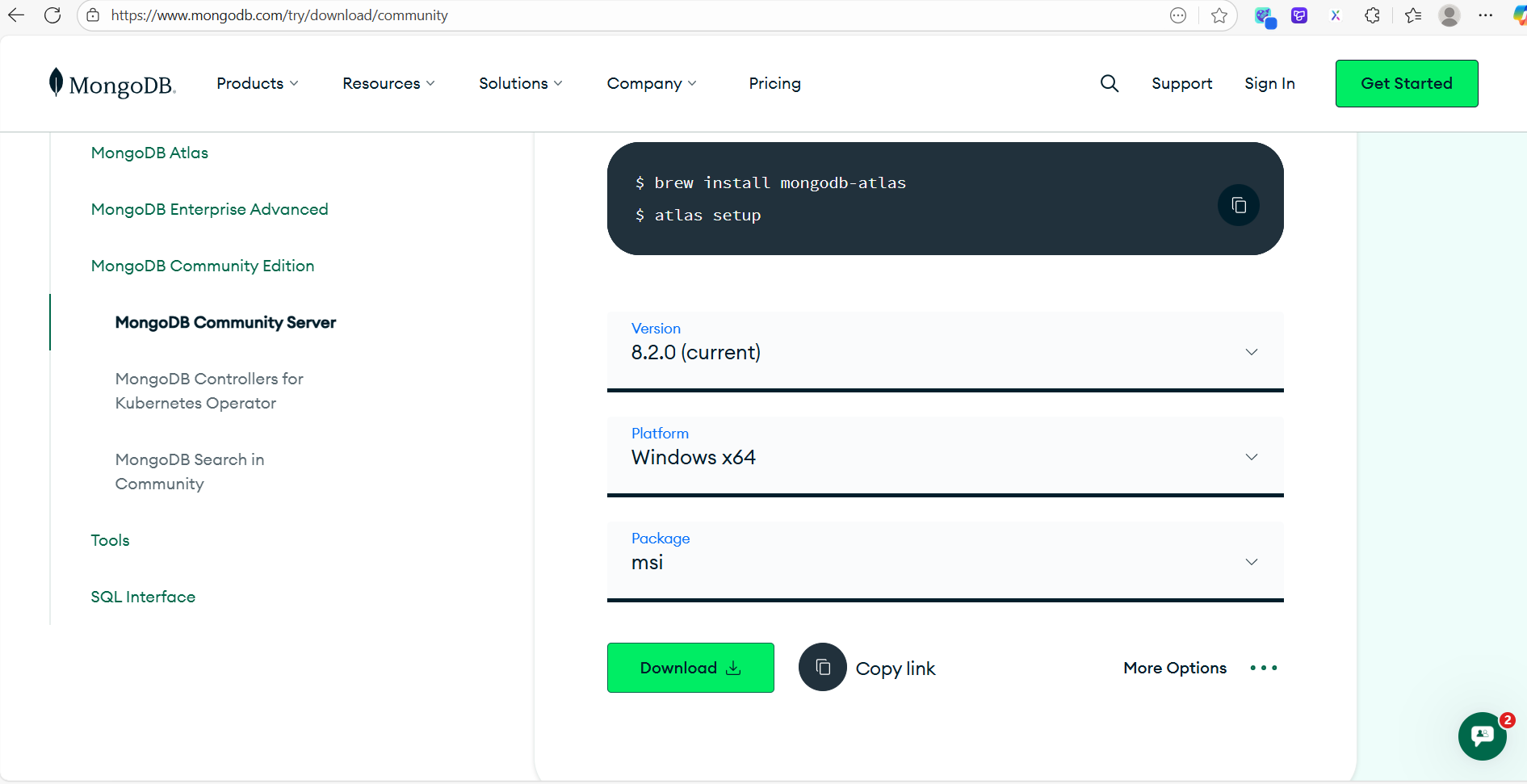 安装所需的必备包后,从以下链接下载 MongoDB Community tgz