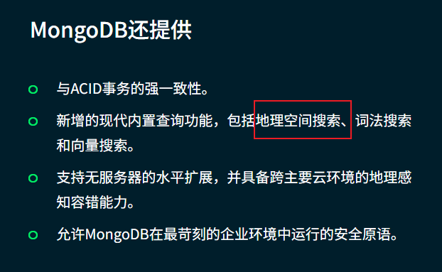 和传统数据库相比,MongoDB 最大的特点就是灵活、好扩展。不需要提前设计好死板的表结构,且支持索引。MongoDB的查询语言非常强大,其语法有点类似于面向对象的查询语言,几乎可以实现了类似关系数据库单表查询的绝大部分功能(可以通过聚合的方式实现多表查询),而且还支持对数据建立索引。