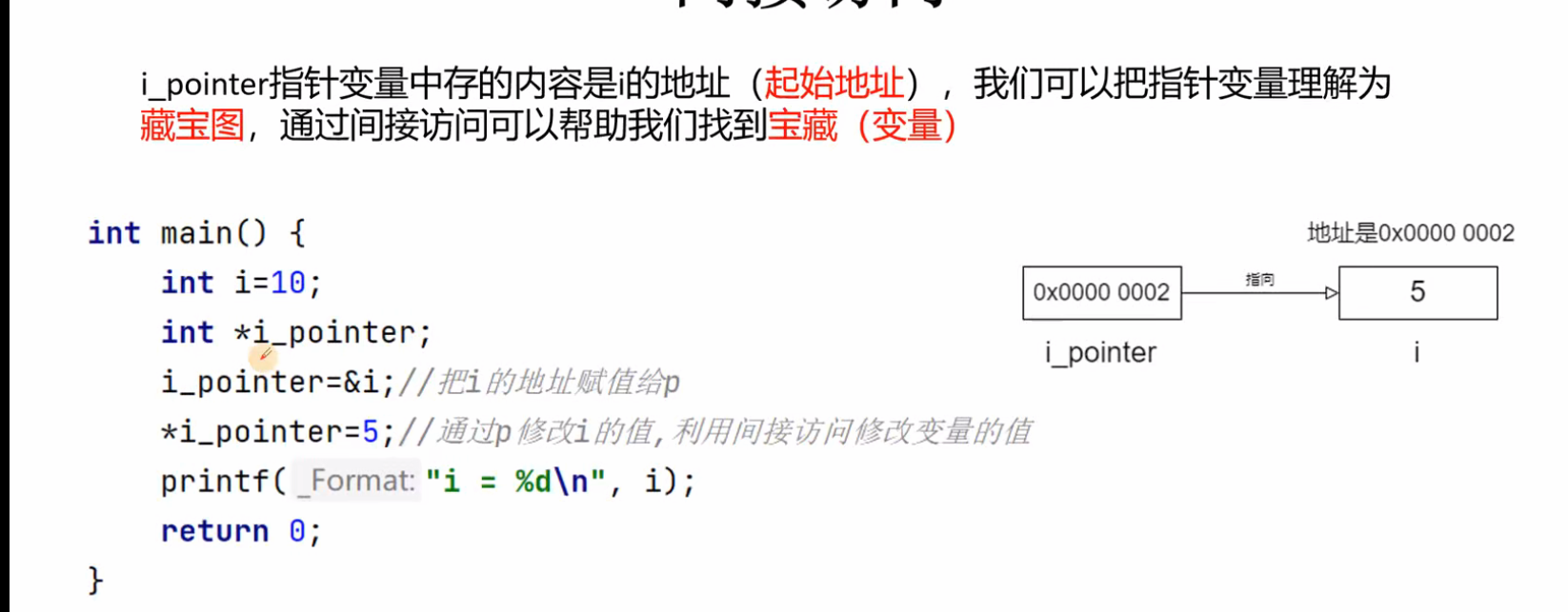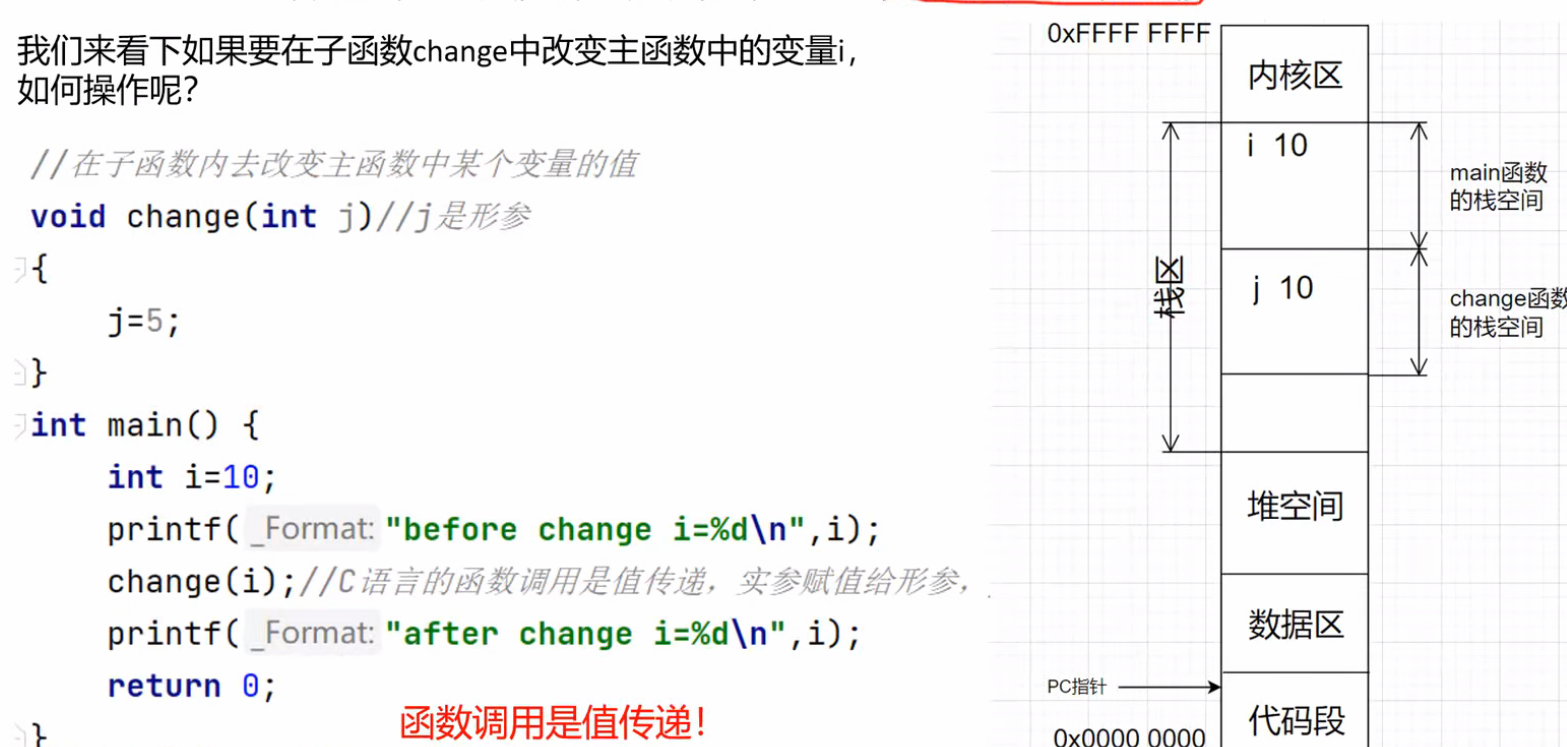}int main(){int *p = NULL; // p 初始化为空指针int i = 10;int *q = &i; // q 指向变量 imodif_pointer(p, q); // 把 p 修改成和 q 一样printf("after modify_pointer *p=%d\n", *p);return 0;