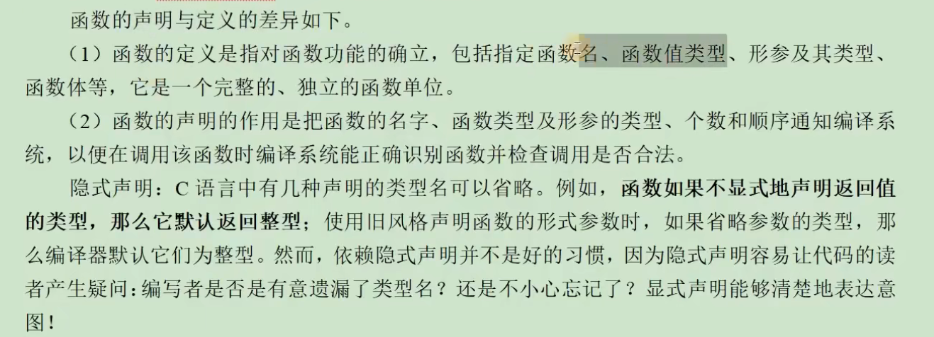 函数声明与定义的差异: