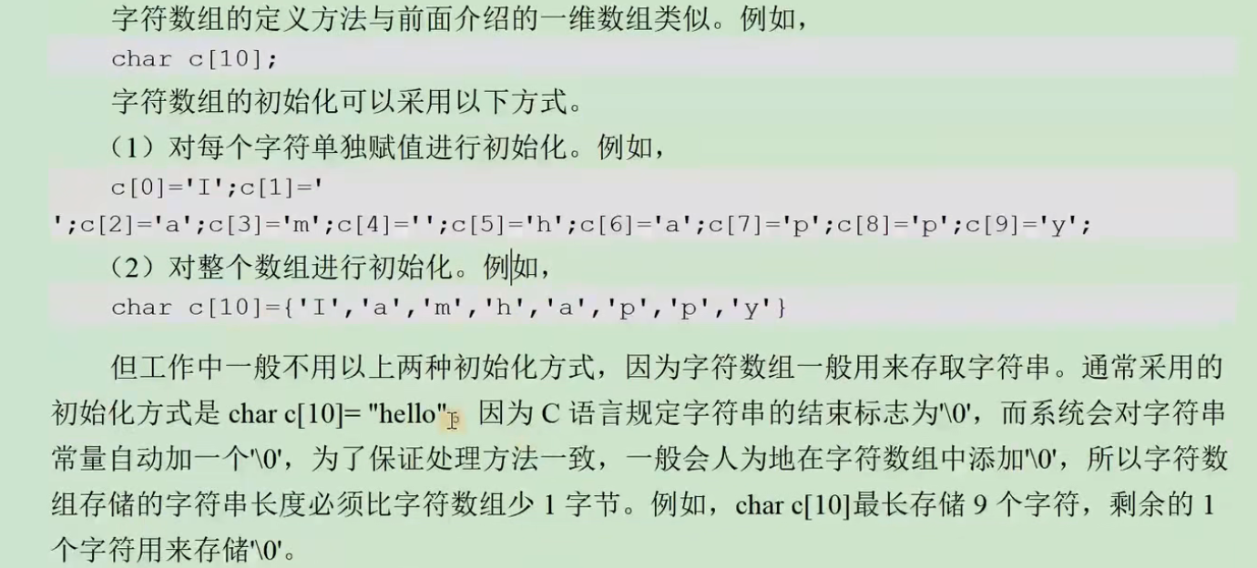 以字符’\0’作为字符串结束标志